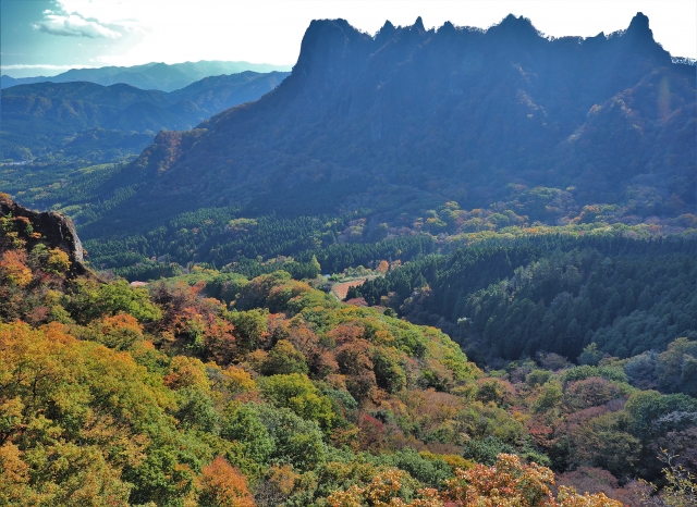 赤城山・榛名山と合わせ上毛三山と呼ばれる、荒々しい岩肌が特徴の妙義山は、麓の妙義神社まで南西方向に17km、クルマで25分で行くことができます。妙義山は、日本三大奇勝の1つにもなっています。